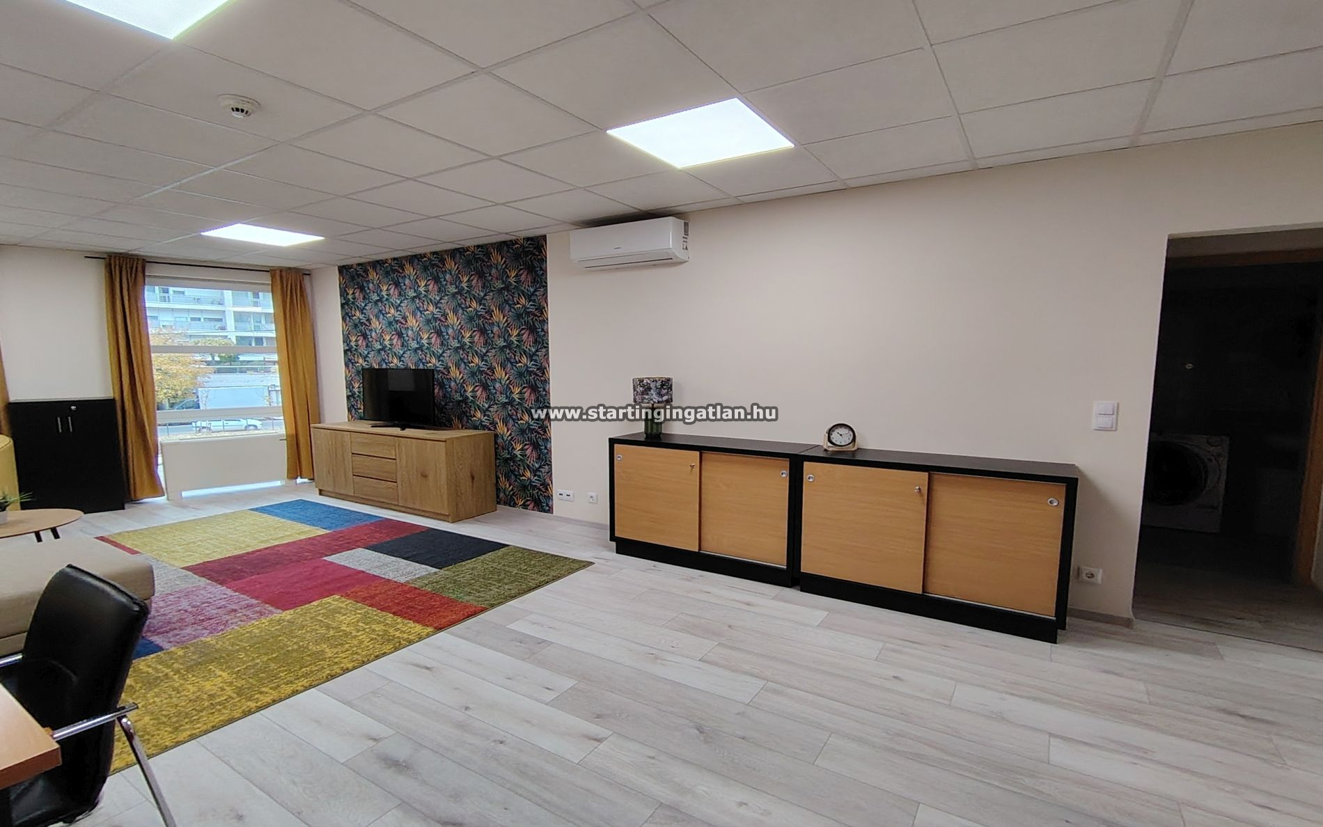 A modern, tágas amerikai konyhás nappali és a külön hálószoba világos, barátságos színekkel, új burkolatokkal és klímával minden helyiségben igazi otthonos hangulatot teremt.