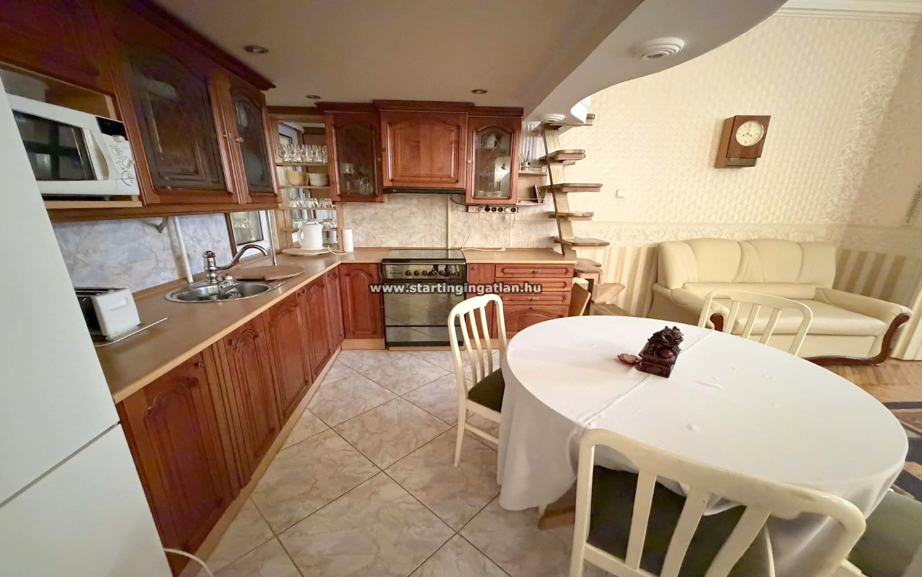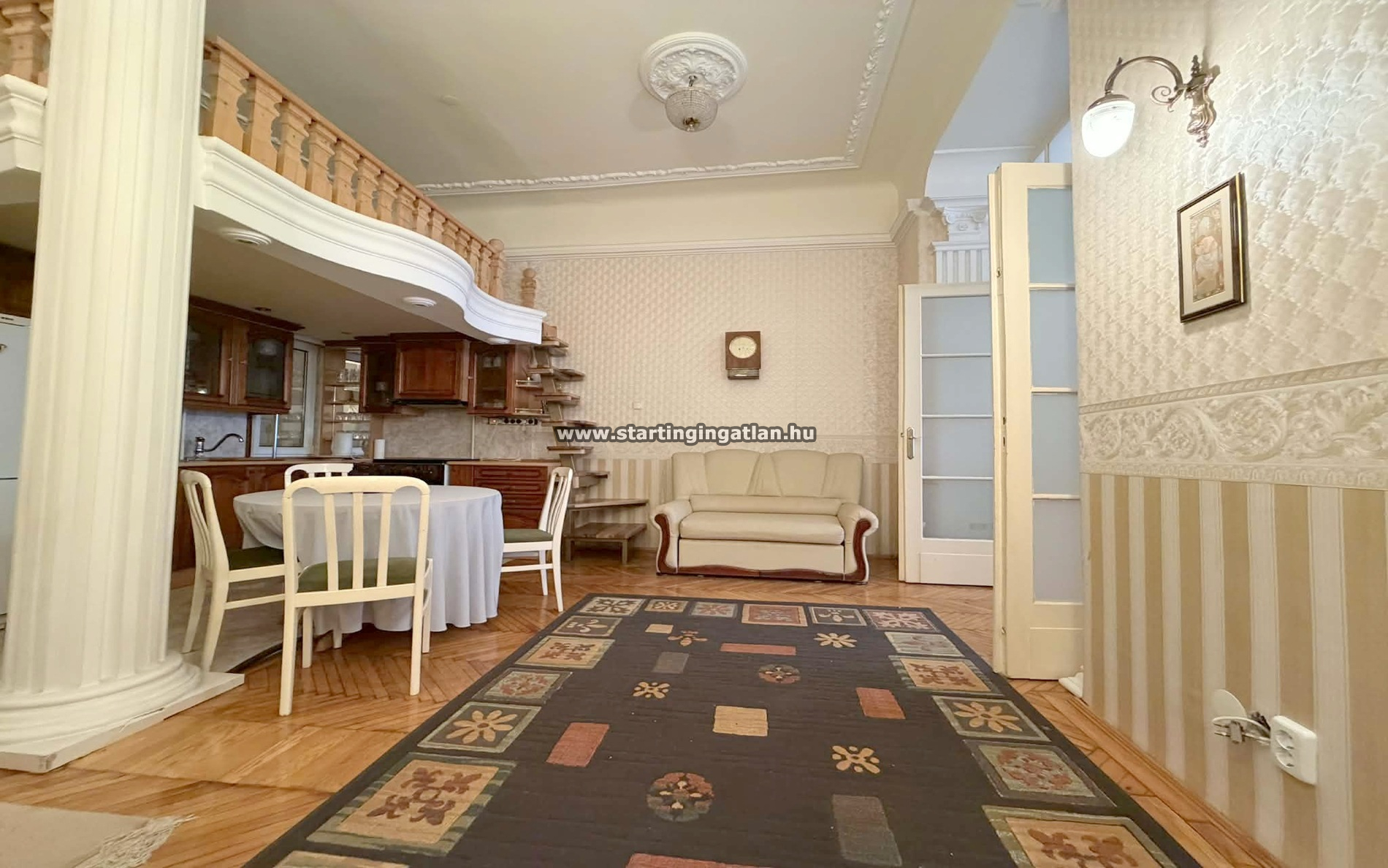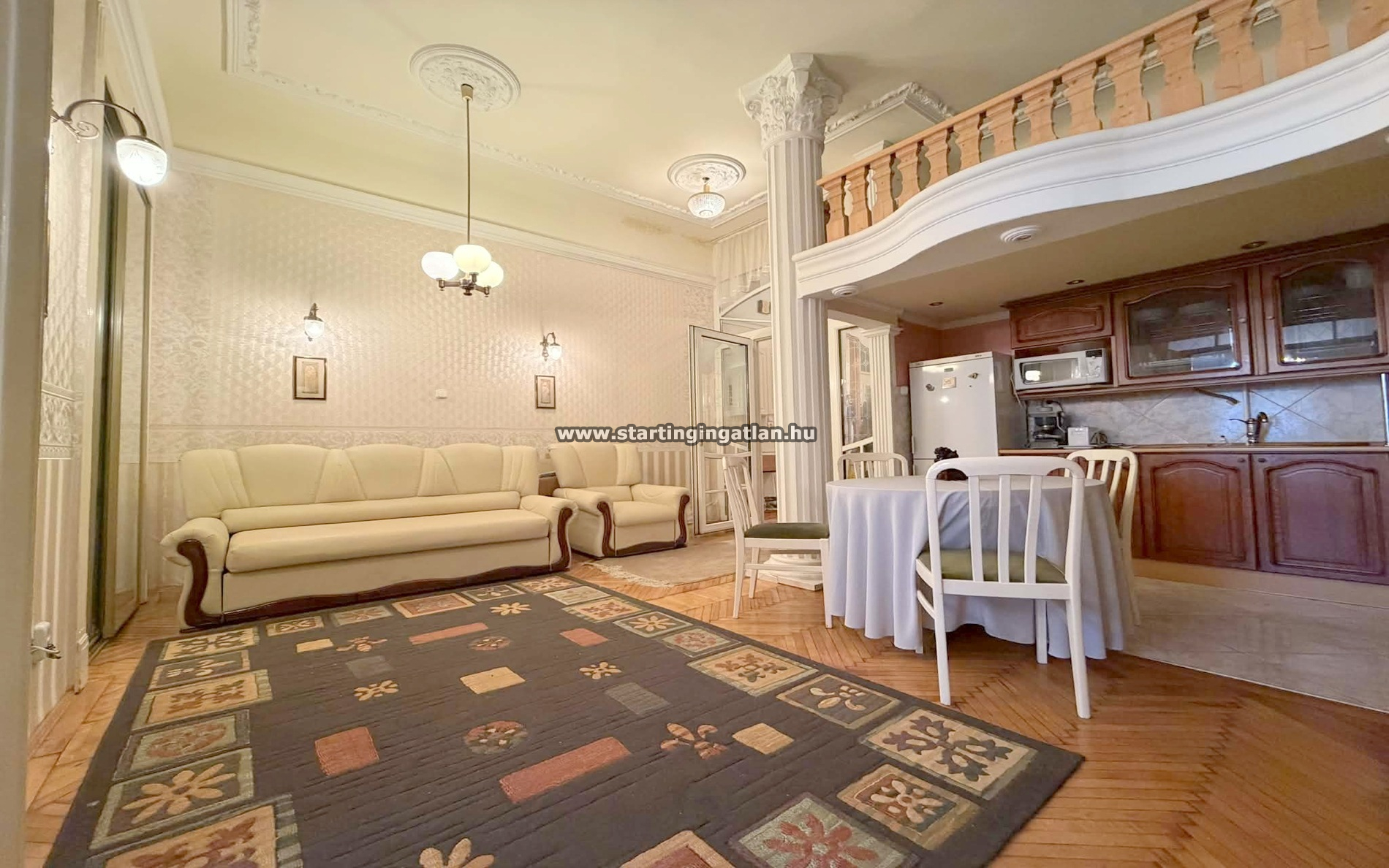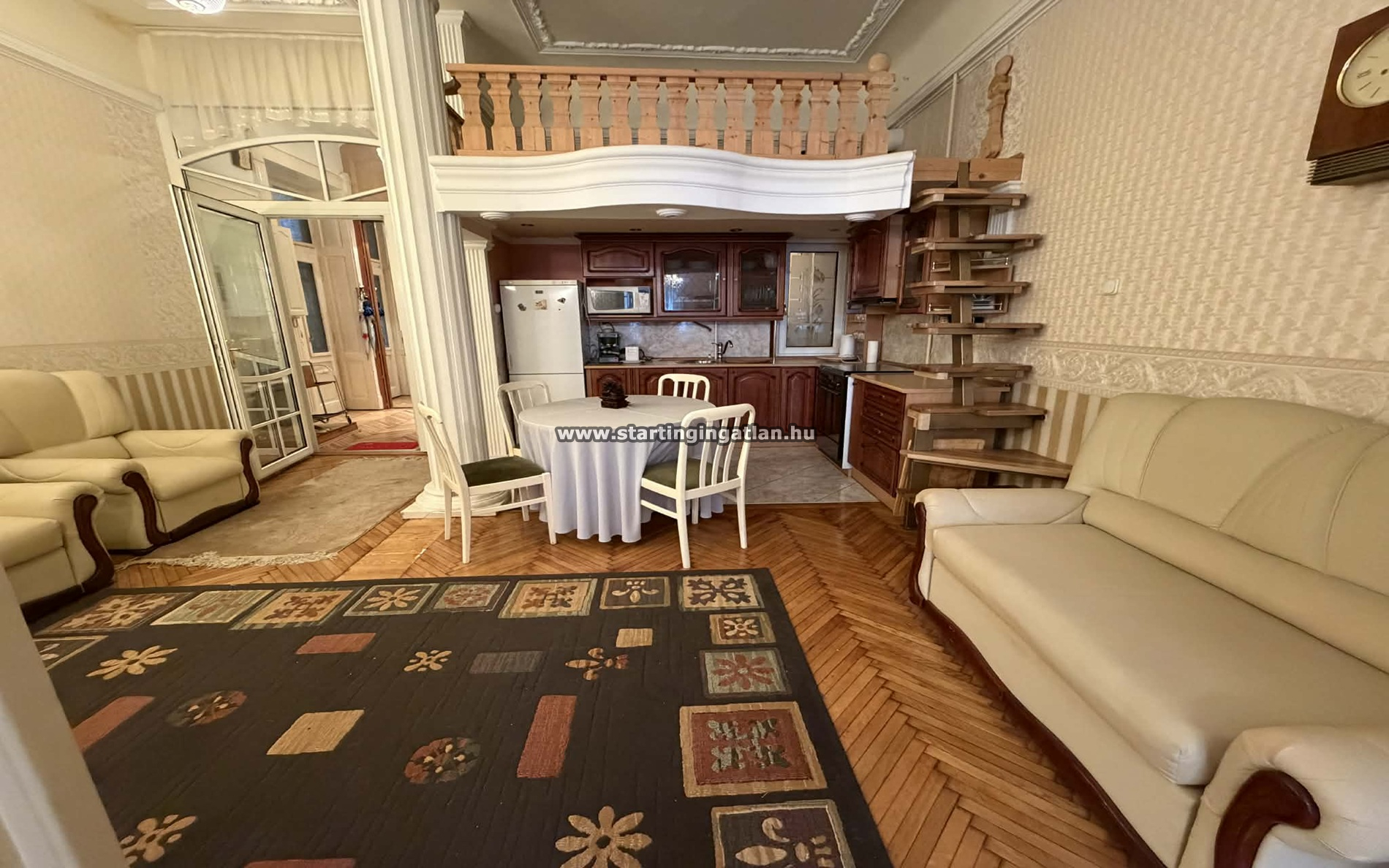 Az impozáns nappali kristálycsillárával és stílusos bútorzatával reprezentatív, mégis meleg hangulatot áraszt, a tágas, sarokkádas fürdőszoba a mindennapi kikapcsolódás ideális színtere, míg a hangulatos étkező és a teljesen felszerelt konyha a közös pillanatoknak ad teret. A galériás kialakítás, a magas belmagasság, a minőségi burkolatok és az egyedi részletek tovább erősítik a lakás különleges karakterét.