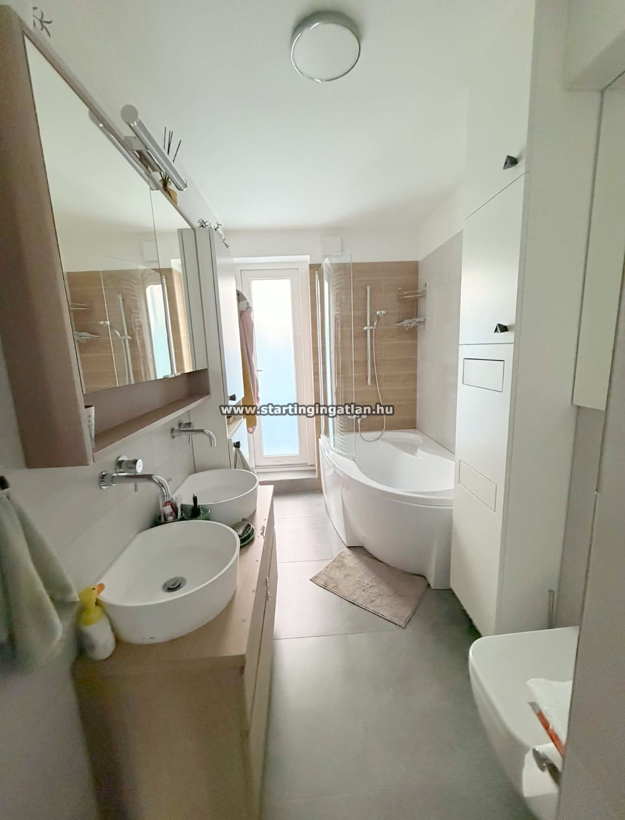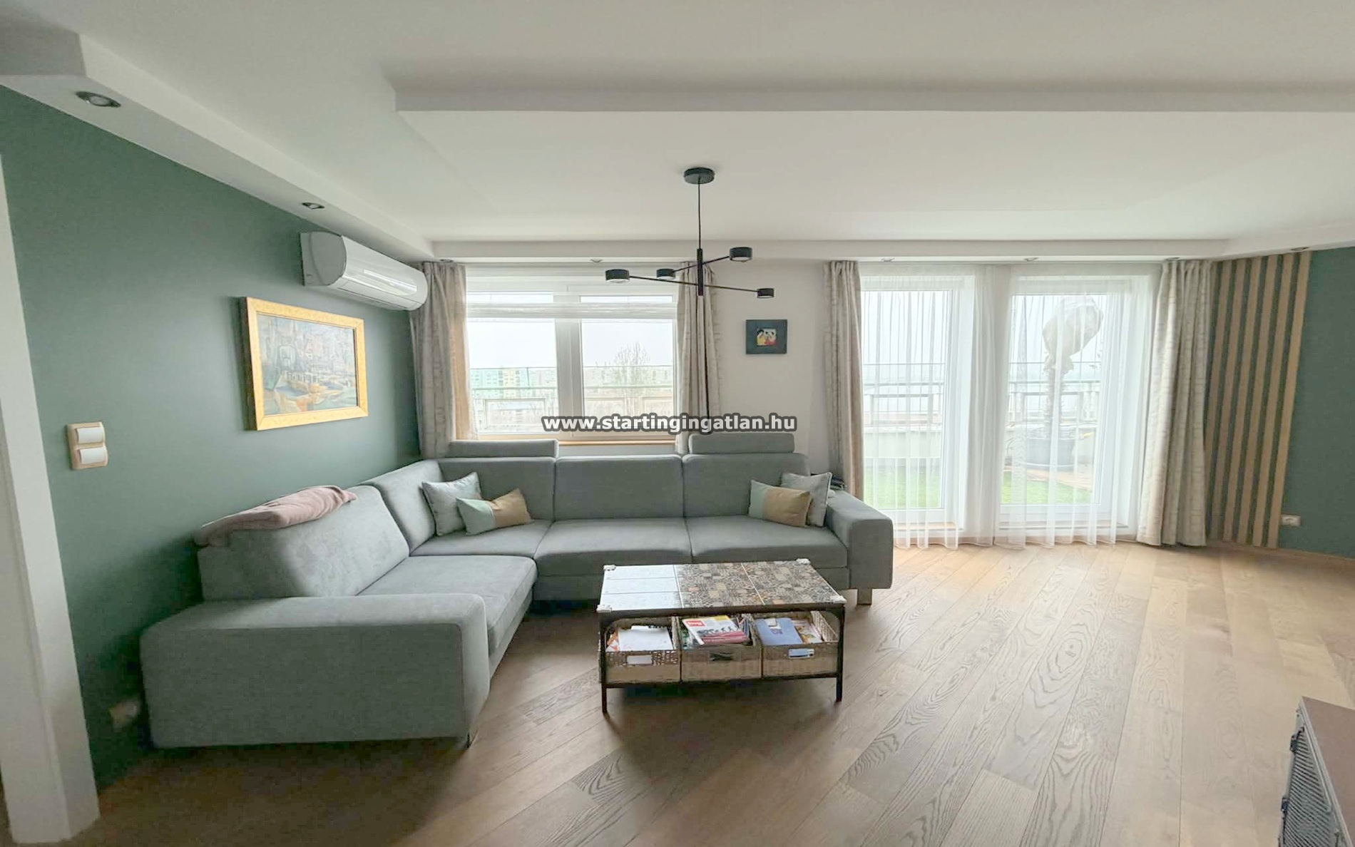 A lakás három különálló szobával, két fürdőszobával, tágas nappalival és fűtött télikerttel rendelkezik, így ideális választás gyermekes családoknak vagy természetkedvelőknek, akik értékelik a teret, a fényt és a harmóniát. A modern komfort sem marad el: légkondicionálás, okosfűtés, smart lock rendszer, automata öntözés, valamint mosó- és szárítógép szolgálja a kényelmet.
