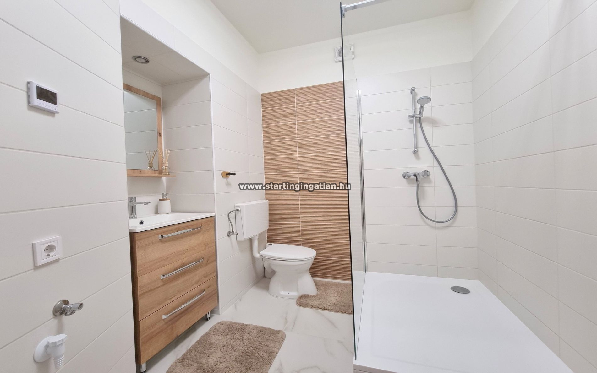 A korszerű műszaki megoldások – elektromos padlófűtés H tarifás villanyórával, villanybojleres meleg víz-ellátás, valamint mindkét szobában 3,5 kW-os hűtő-fűtő klíma – egész évben komfortos használatot garantálnak, az ablakokon elhelyezett szúnyoghálók pedig tovább növelik a kényelmet.