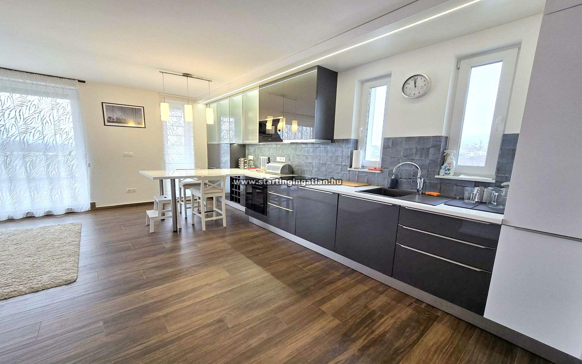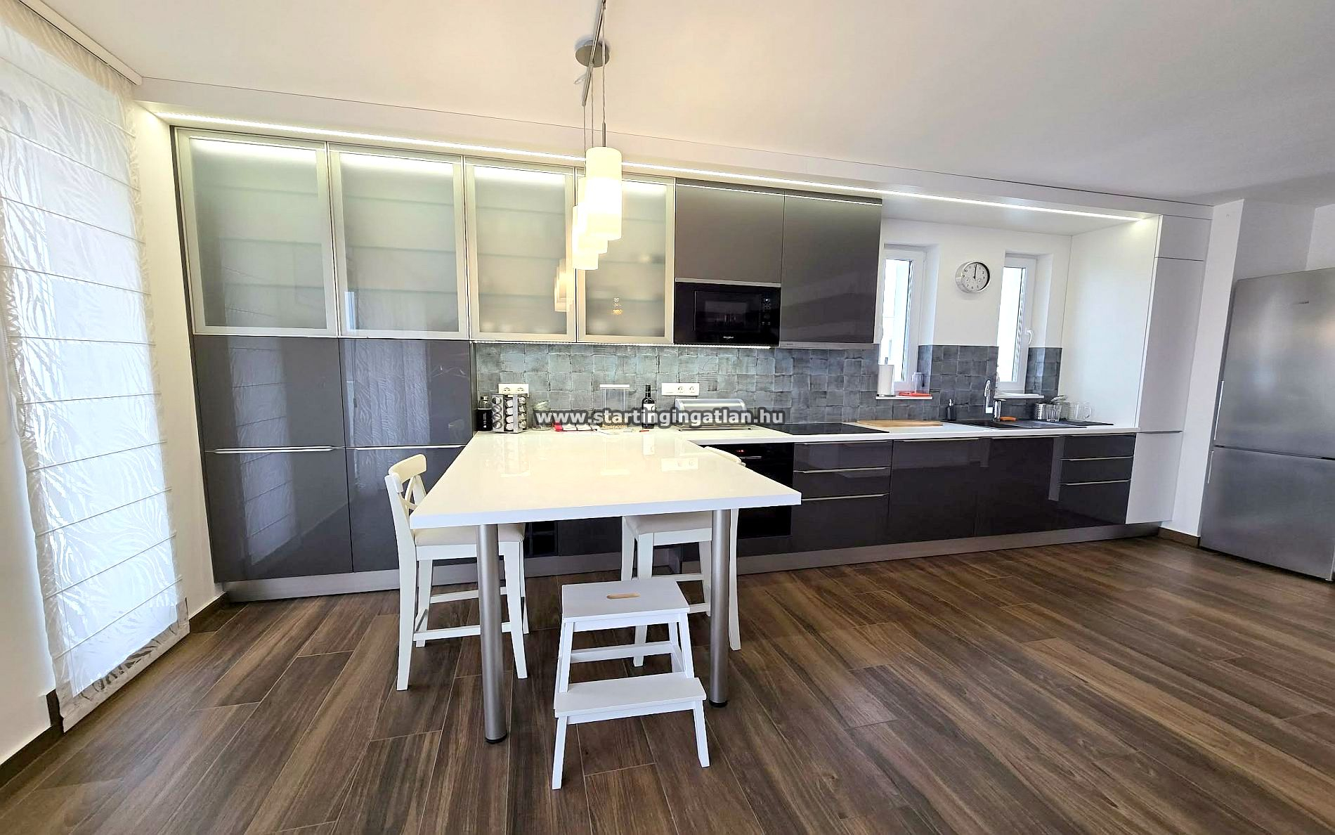 A belső terek letisztult, luxus kivitelben készültek, a lakás teljesen bútorozott és gépesített, magas minőségű konyhai berendezésekkel és eszközökkel. A komfortérzetet levegő–hőszivattyús rendszer, padlófűtés, valamint hűtő-fűtő klíma garantálja. A napelemes rendszer, az A+++ energetikai besorolás és a kiváló szigetelés rendkívül alacsony fenntartási költségeket eredményez.