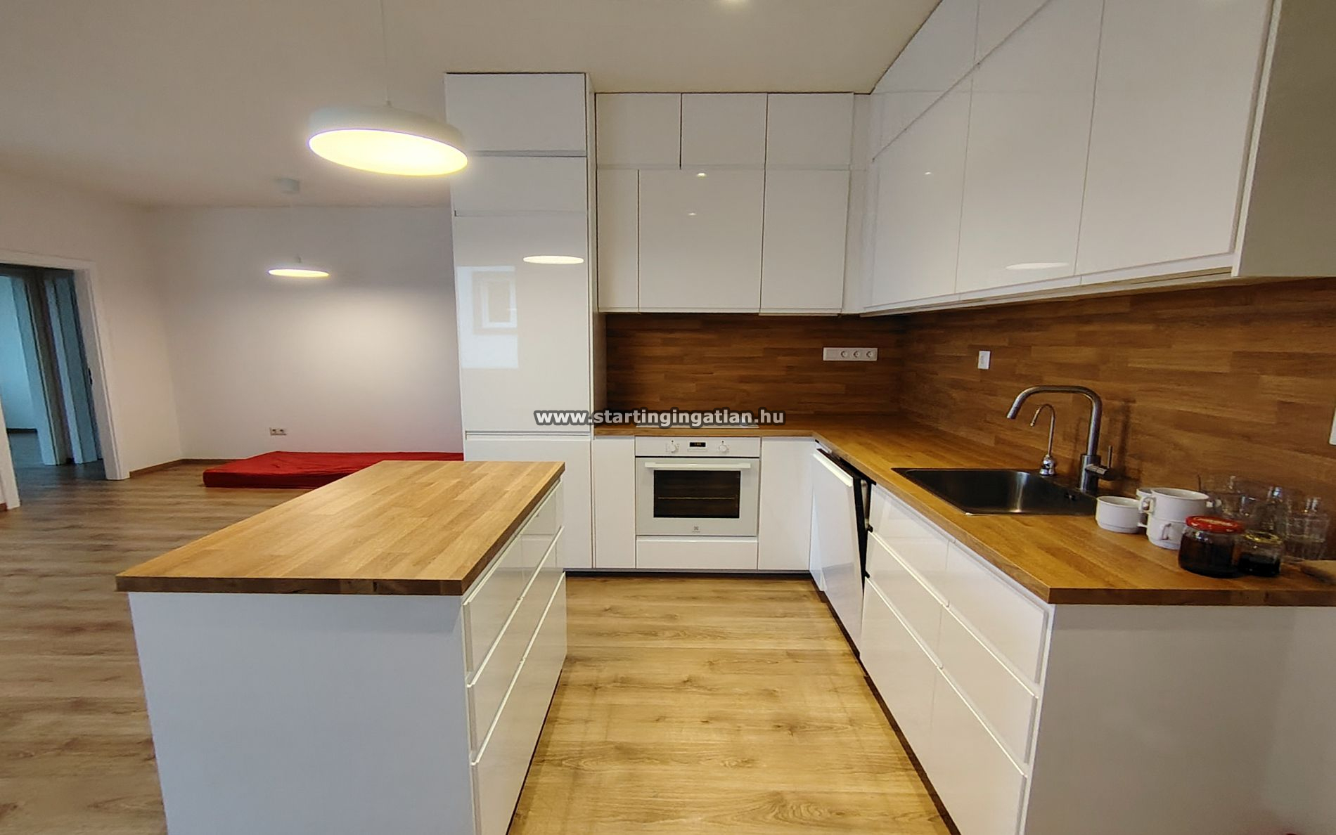 A közel 40 négyzetméteres, tágas nappali amerikai konyhával és étkezővel nemcsak az otthon központi tere, hanem kifejezetten reprezentatív élettér is, amely ideális igényes párok számára, ugyanakkor kiválóan alkalmas irodai vagy egyéb szellemi tevékenységre is. A gyönyörű, modern, magasfényű fehér konyha elegáns konyhaszigettel és teljes gépesítéssel áll rendelkezésre, beépített víztisztítóval, így a mindennapi kényelem kompromisszumok nélkül biztosított. A lakás kialakítása dupla komfortot nyújt: két külön bejáratú hálószoba található benne, az egyikhez közvetlenül kapcsolódik egy kádas fürdőszoba, amely a nyugodt esti feltöltődést szolgálja, míg a másik hálóhoz egy modern, tusolókabinos fürdőszoba tartozik, ideális a gyors reggelekhez.