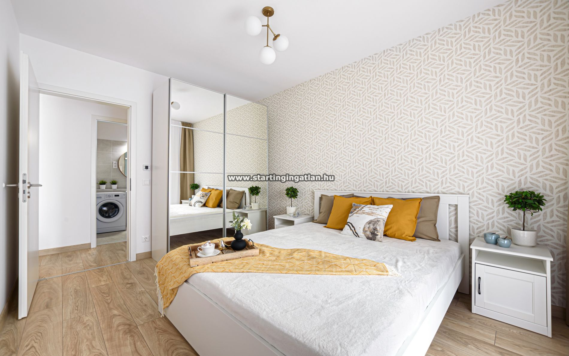 A lakás vadonatúj, lakberendező által tervezett bútorokkal és korszerű műszaki megoldásokkal felszerelt. A komfortot elektromos redőnyök, smart home rendszer kamerás beléptetéssel, valamint mennyezeti hűtés-fűtés biztosítja. A modern konyha prémium beépített gépekkel rendelkezik, beleértve a hűtőszekrényt, mosogatógépet, indukciós főzőlapot, elektromos sütőt és páraelszívót. A fürdőszoba kádas kialakítású, új mosógéppel felszerelt, a WC külön helyiségben kapott helyet. A hálószoba tágas gardróbbal rendelkezik, a lakás minden részlete első lakó használatára vár.