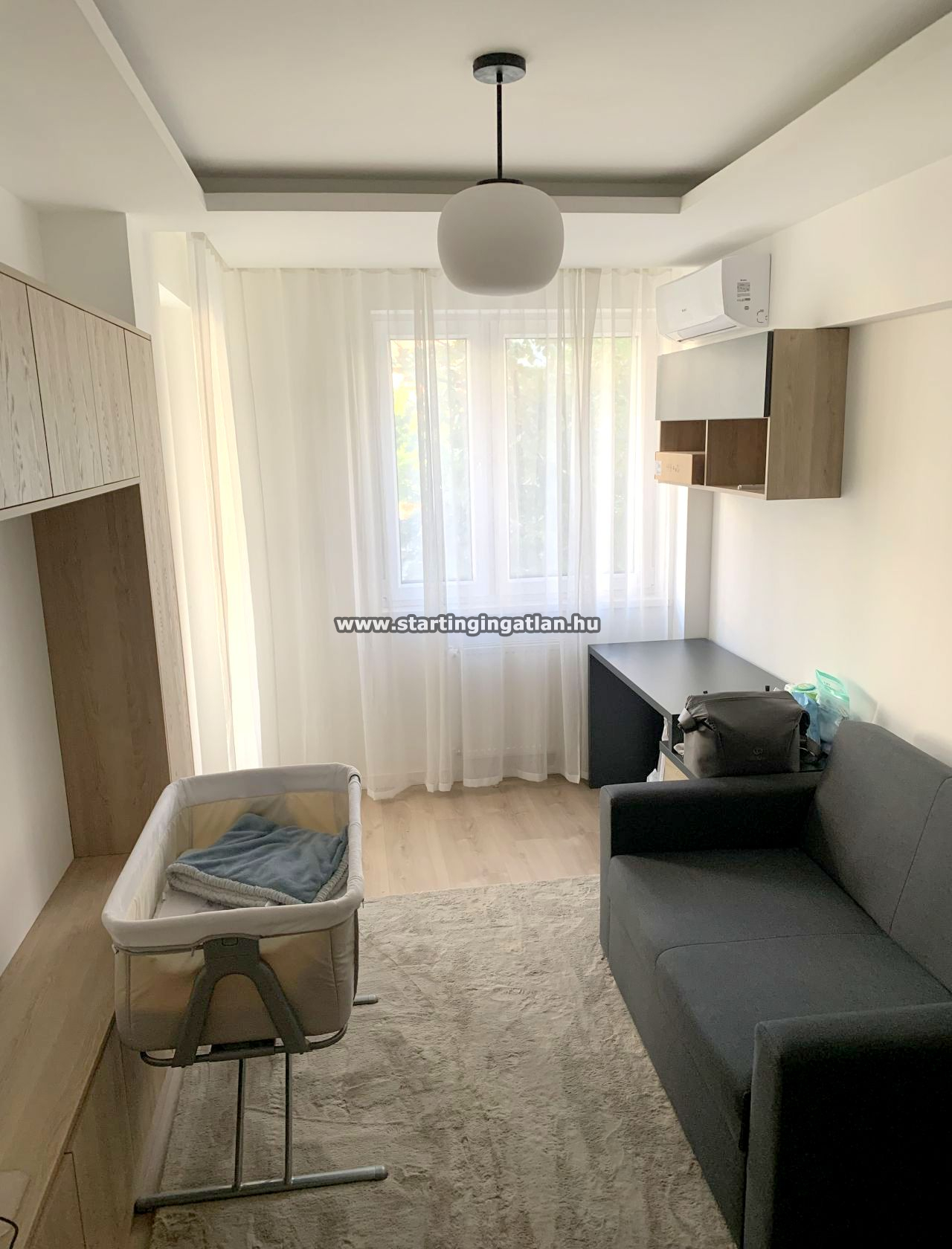 A lakás világos, napfényes terekkel rendelkezik, a nagy ablakoknak köszönhetően egész nap kellemes természetes fény tölti meg a helyiségeket.