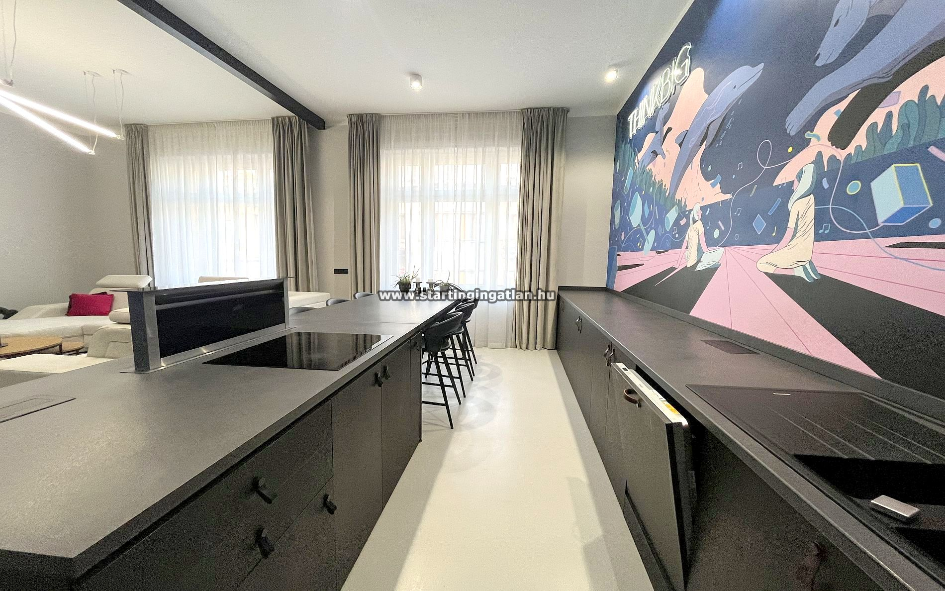 Az ingatlan központi része a tágas amerikai konyhás nappali, amely prémium minőségű beépített gépekkel és ízlésesen válogatott, modern bútorokkal felszerelt, így nemcsak otthonos, hanem funkcionálisan is kiválóan kialakított tér. A hálószoba saját, külön gardróbhelyiséggel rendelkezik, amely rengeteg tárolási lehetőséget biztosít, így garantáltan kényelmes és rendezett maradhat az otthona. A lakás fürdőszobája valódi luxust kínál, hiszen egyaránt megtalálható benne egy tágas zuhanyzó és egy kényelmes kád, emellett az ingatlan két különálló WC-vel is rendelkezik. A modern padlófűtés télen is kellemes, egyenletes meleget biztosít, míg a nyári hónapokban a légkondicionáló gondoskodik az ideális hőmérsékletről.