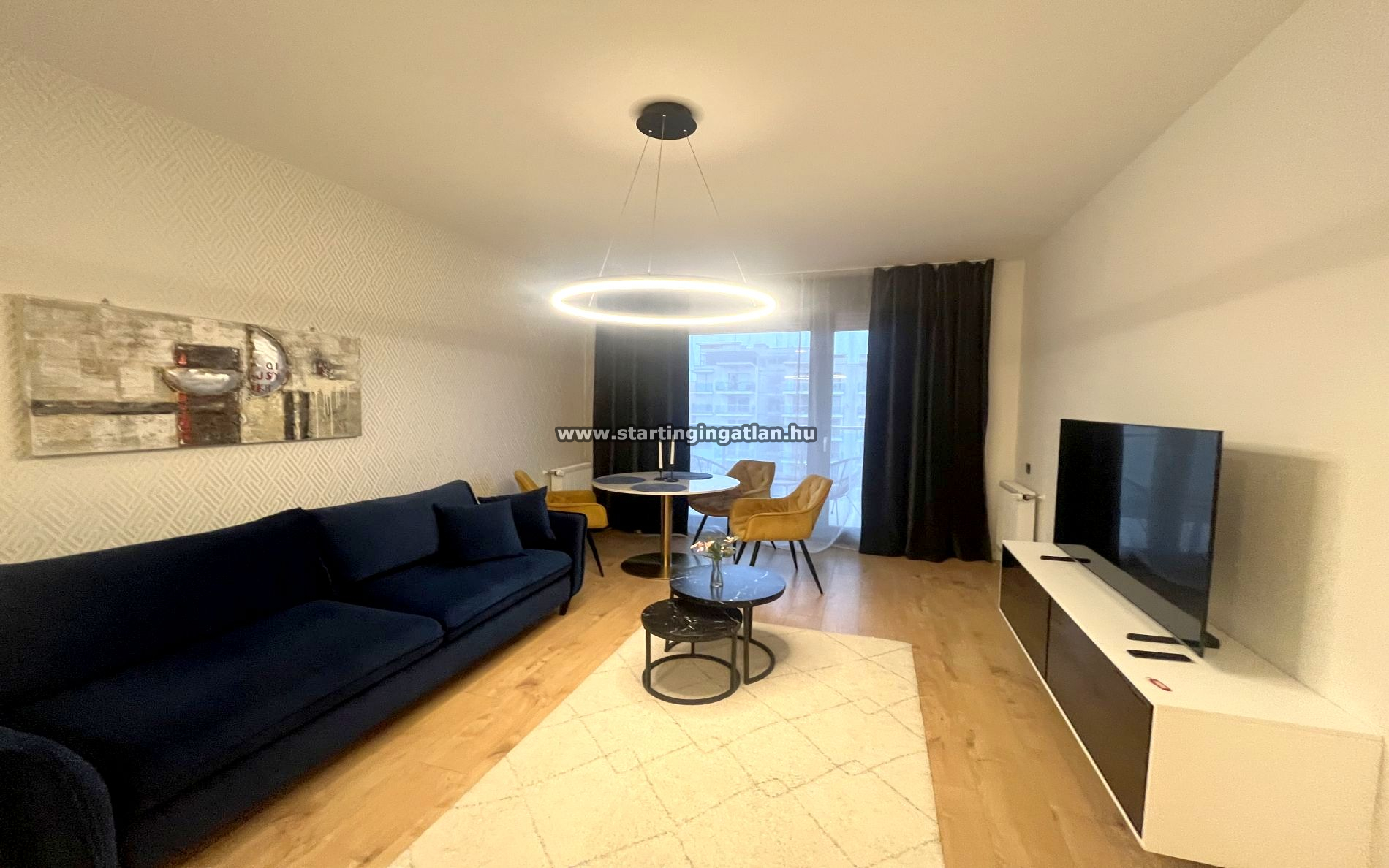 A lakás modern, ízléses és kényelmes bútorokkal berendezett, valóban otthonos atmoszférát áraszt, ahol minden részlet a komfortot szolgálja. A gépesített konyhában hűtőszekrény, mikrohullámú sütő és mosogatógép segíti a mindennapokat, a kerek étkezőasztal köré helyezett stílusos fotelek pedig baráti beszélgetésekhez és kellemes vacsorákhoz ideálisak. A nappaliban az ággyá alakítható kanapéval szemben egy új, nagyképernyős okos TV kapott helyet, a lakás hűtéséről légkondicionáló gondoskodik.